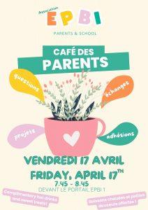 The EPBI Parents & School association is having a new Parents café on Friday April 17th!
